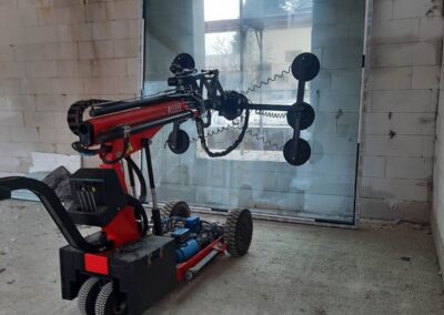 Próżniowy robot montażowy znajduje swoje zastosowanie wszędzie tam gdzie na pierwszym miejscu stoi profesjonalizm oraz precyzja pracy. Dzięki zastosowaniu przyssawek próżniowych robot bez problemu poradzi sobie z montażem szyb, okien oraz wszelkich powierzchni gładkich o wadze aż do 600 kg oraz na wysokości 4,5 m.